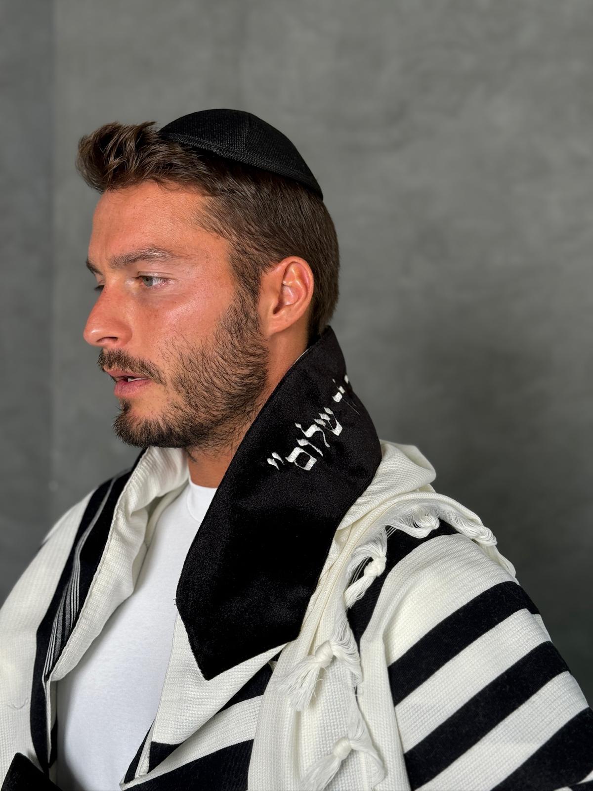 עטרה מקטיפה איכותית , בגוון שחור קלאסי עם הפסוק
