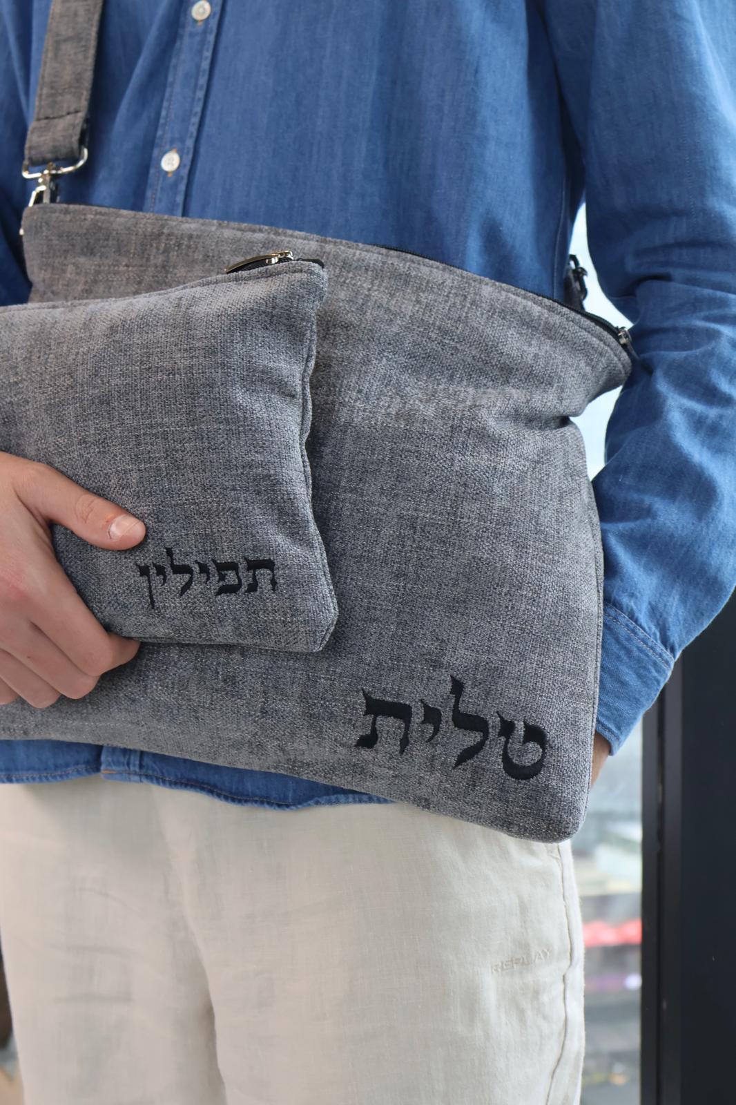 הסט מגיע עם המילה טלית/תפילין בריקמה שחורה.