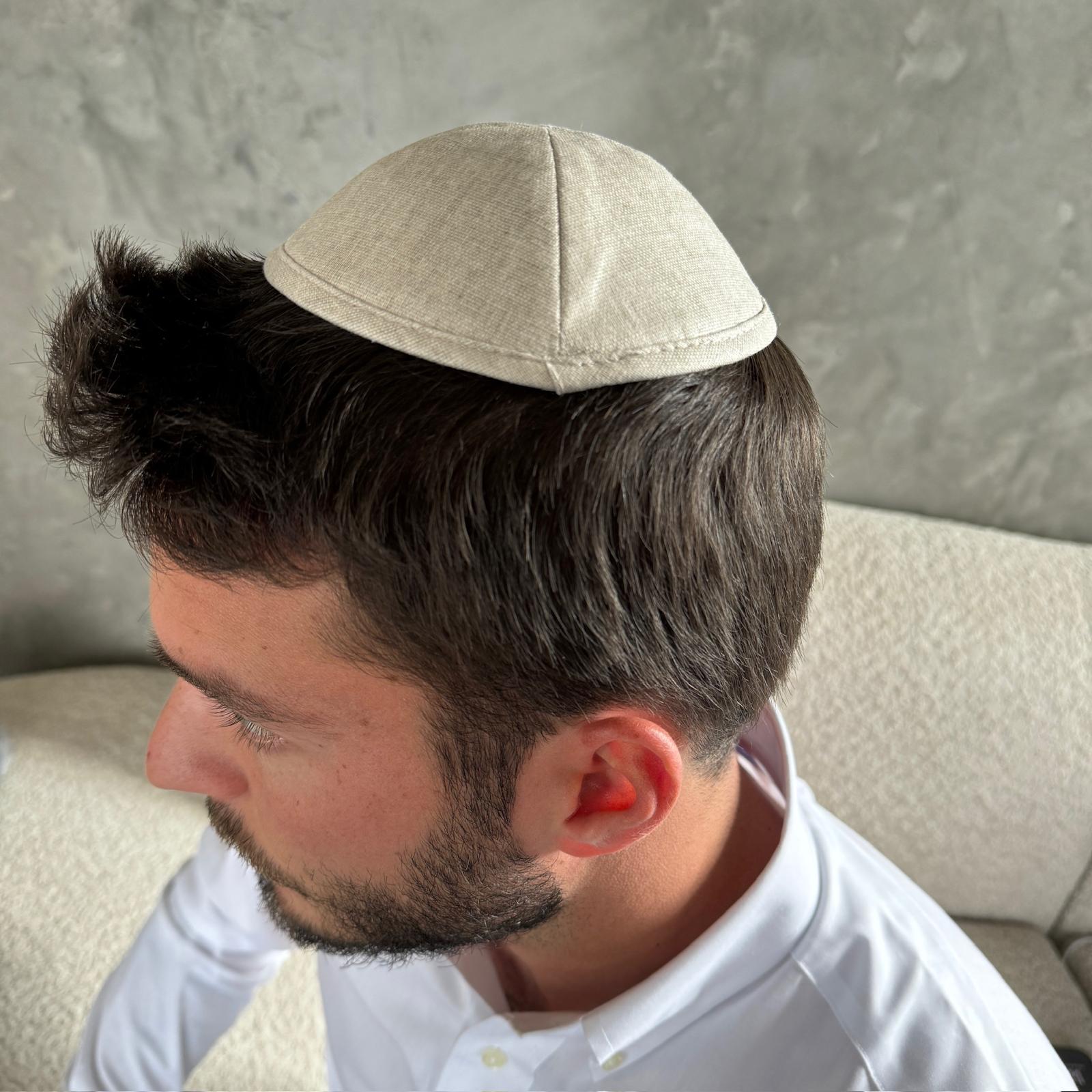 כיפה בד פשתן בגוון שמנת בהיר