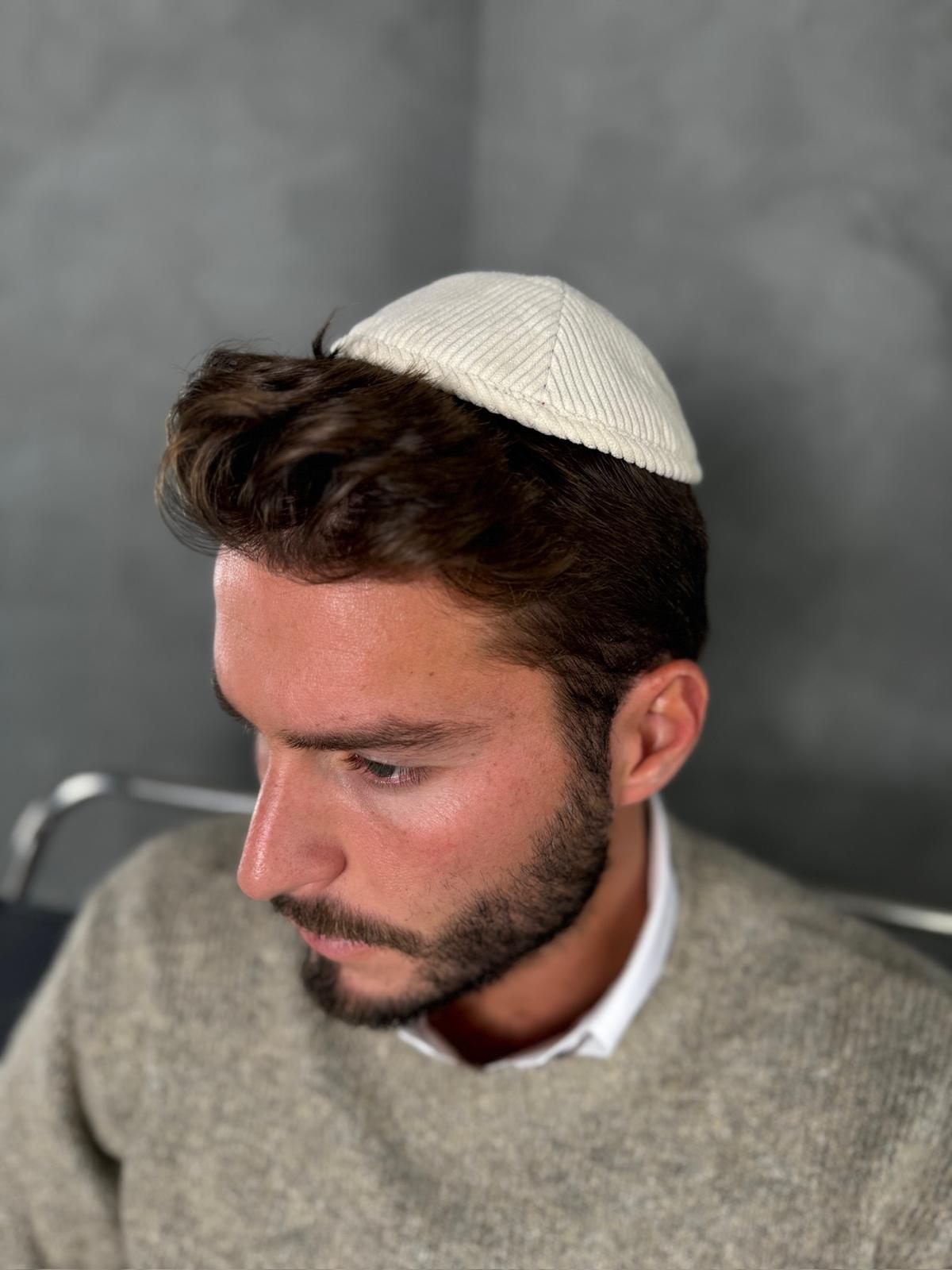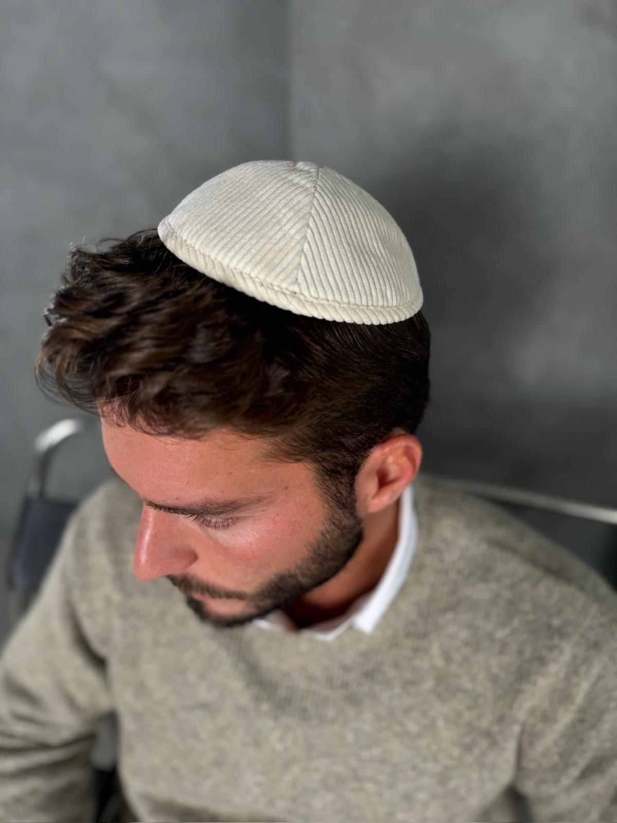 כיפה מבד קורדרוי בגוון אופוויט כולל מקום לסיכה