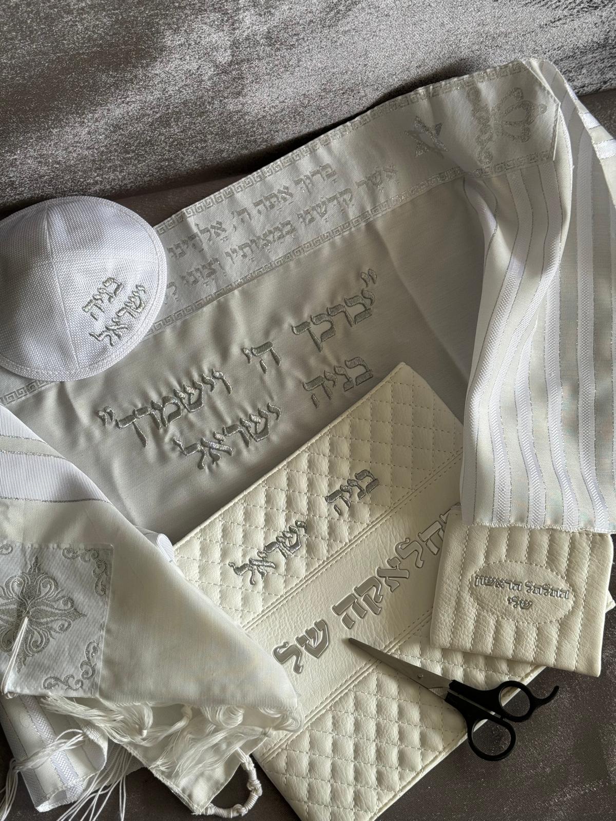 טלית יפה עם ריקמה מדוייקת אפשר להוסיף כתר / מגן דוד