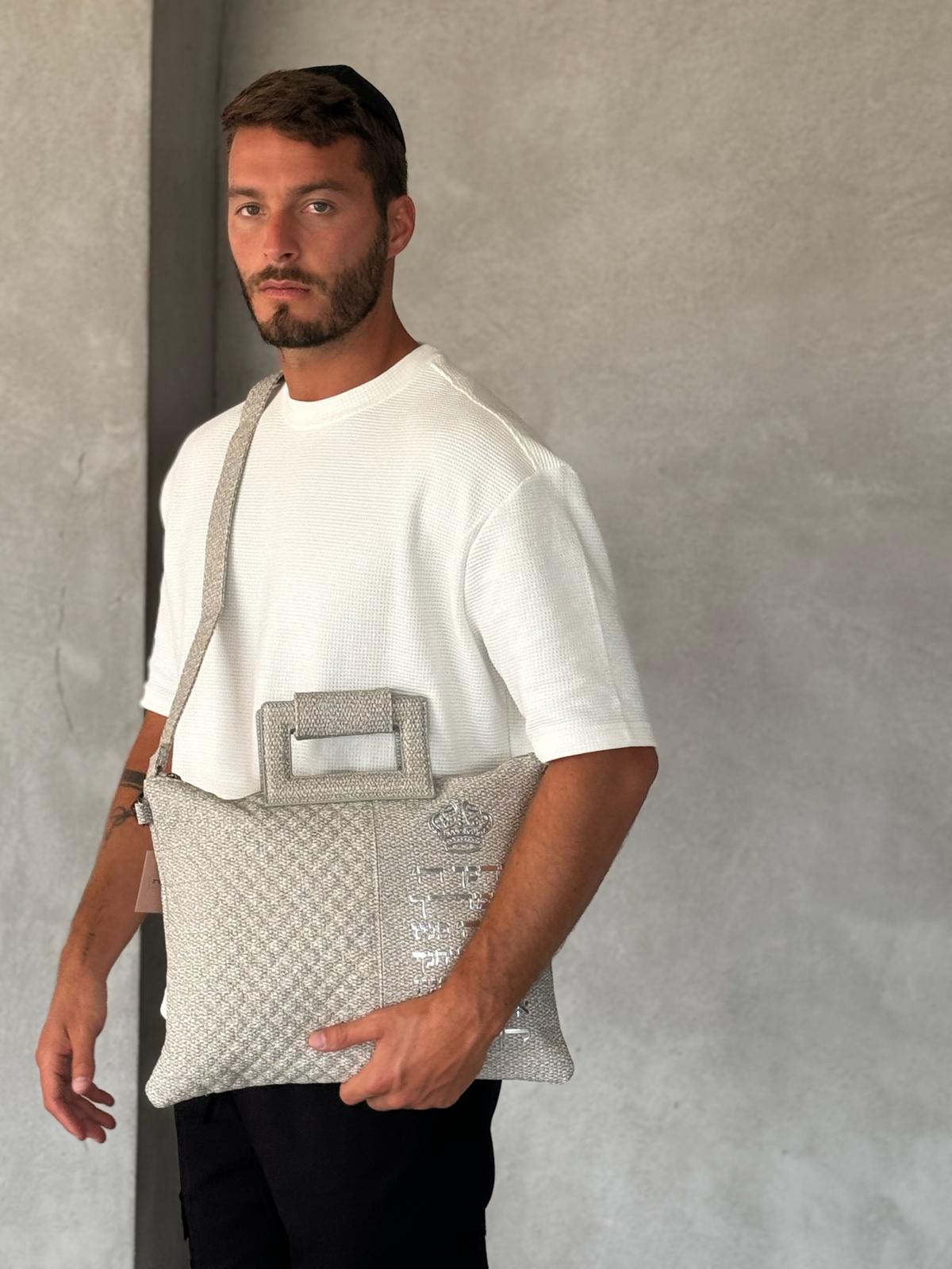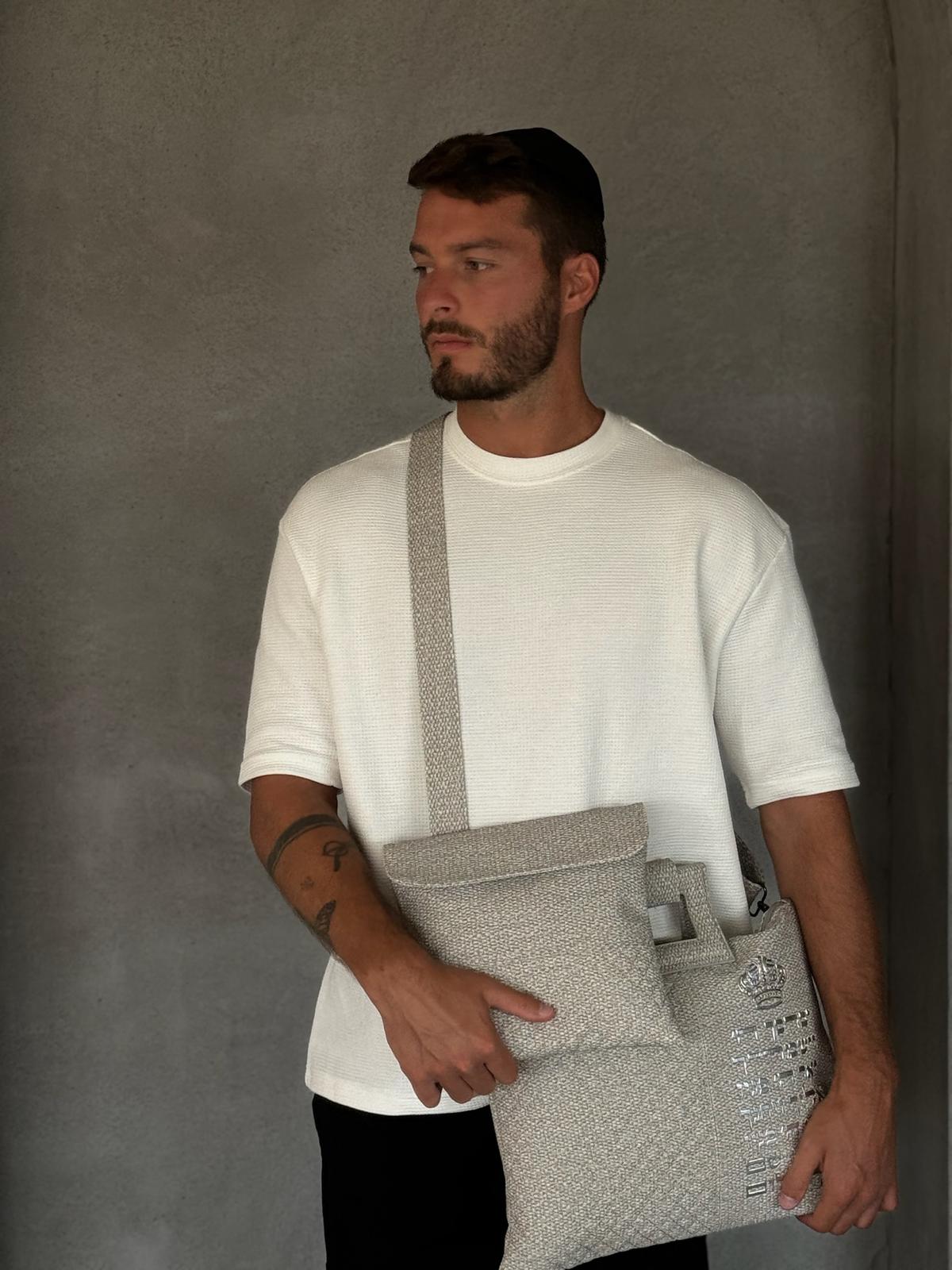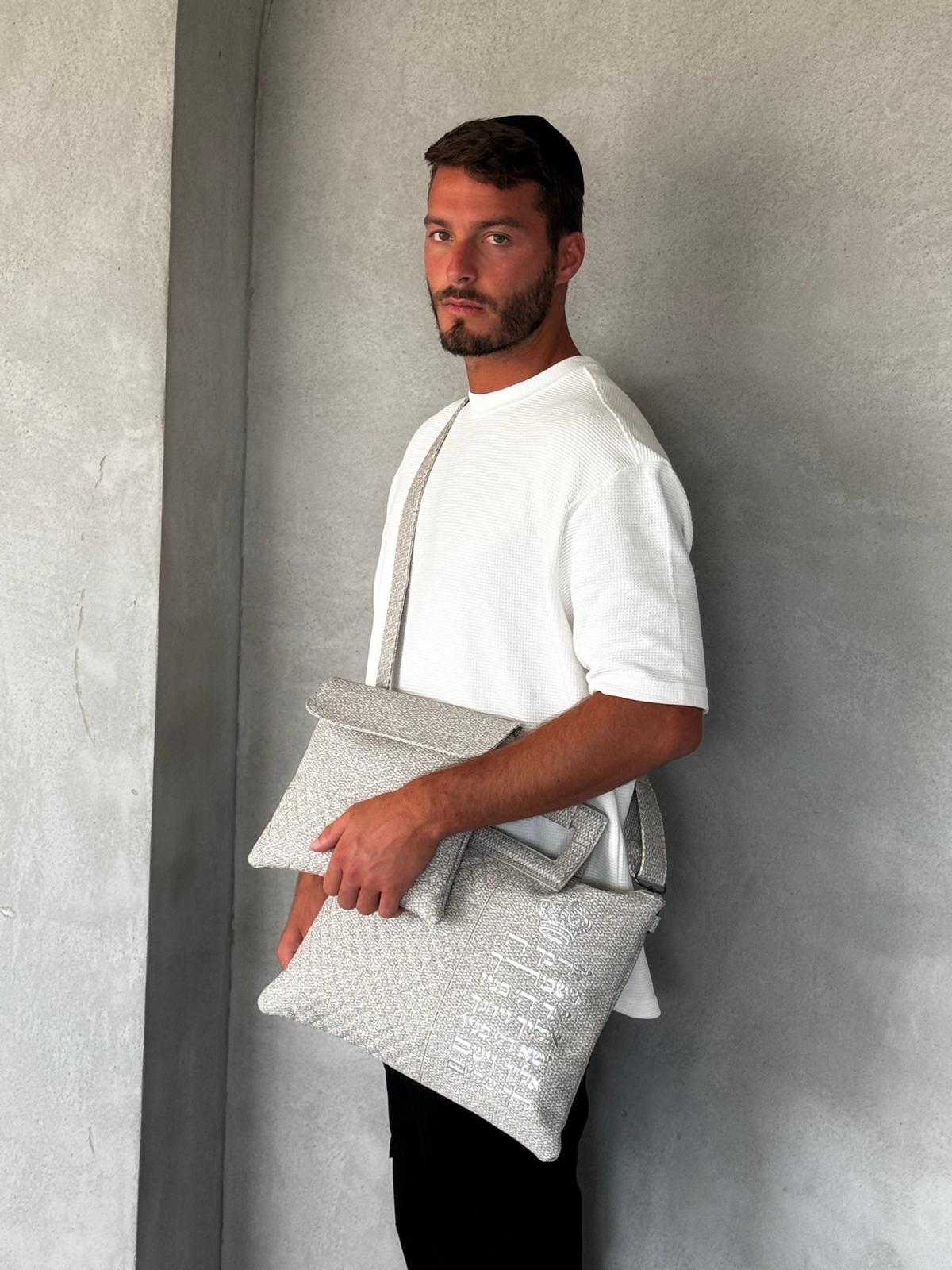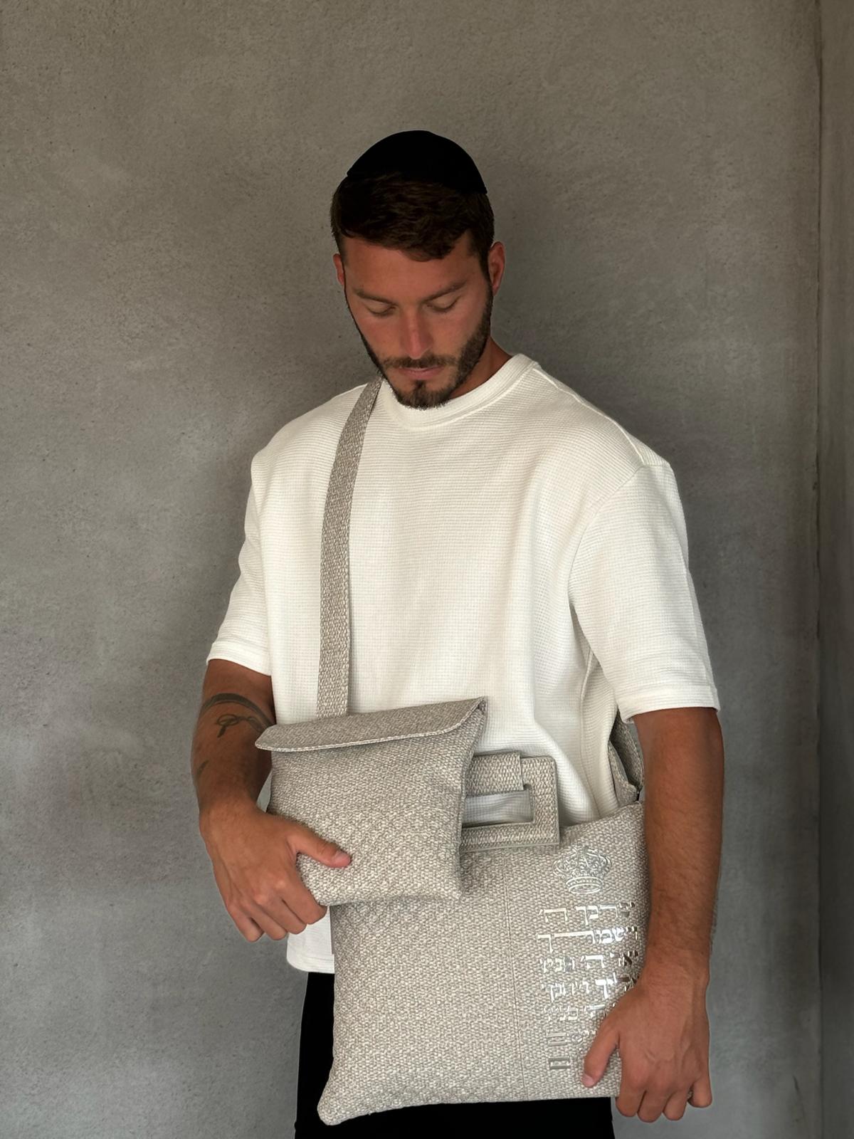 הכיסוי טלית מגיע עם ידית אחיזה בתוספת רצועה לכתף לנוחות מירבית