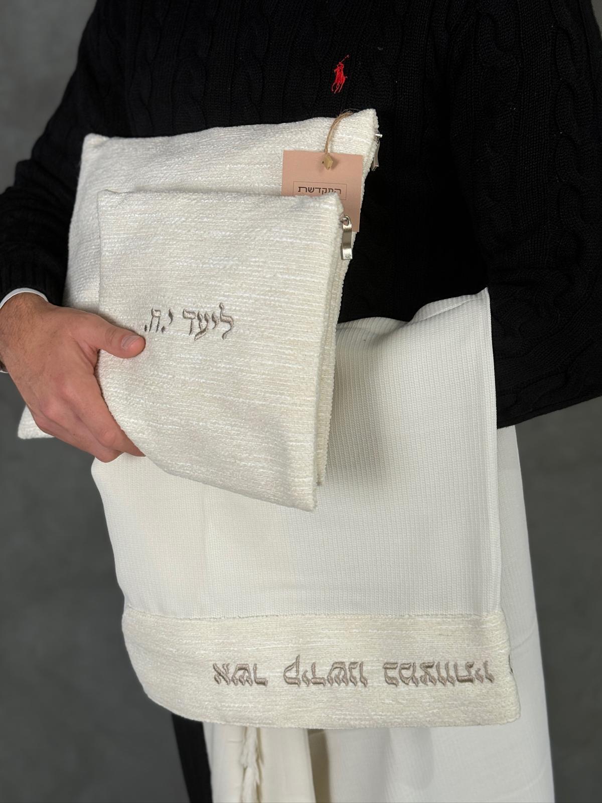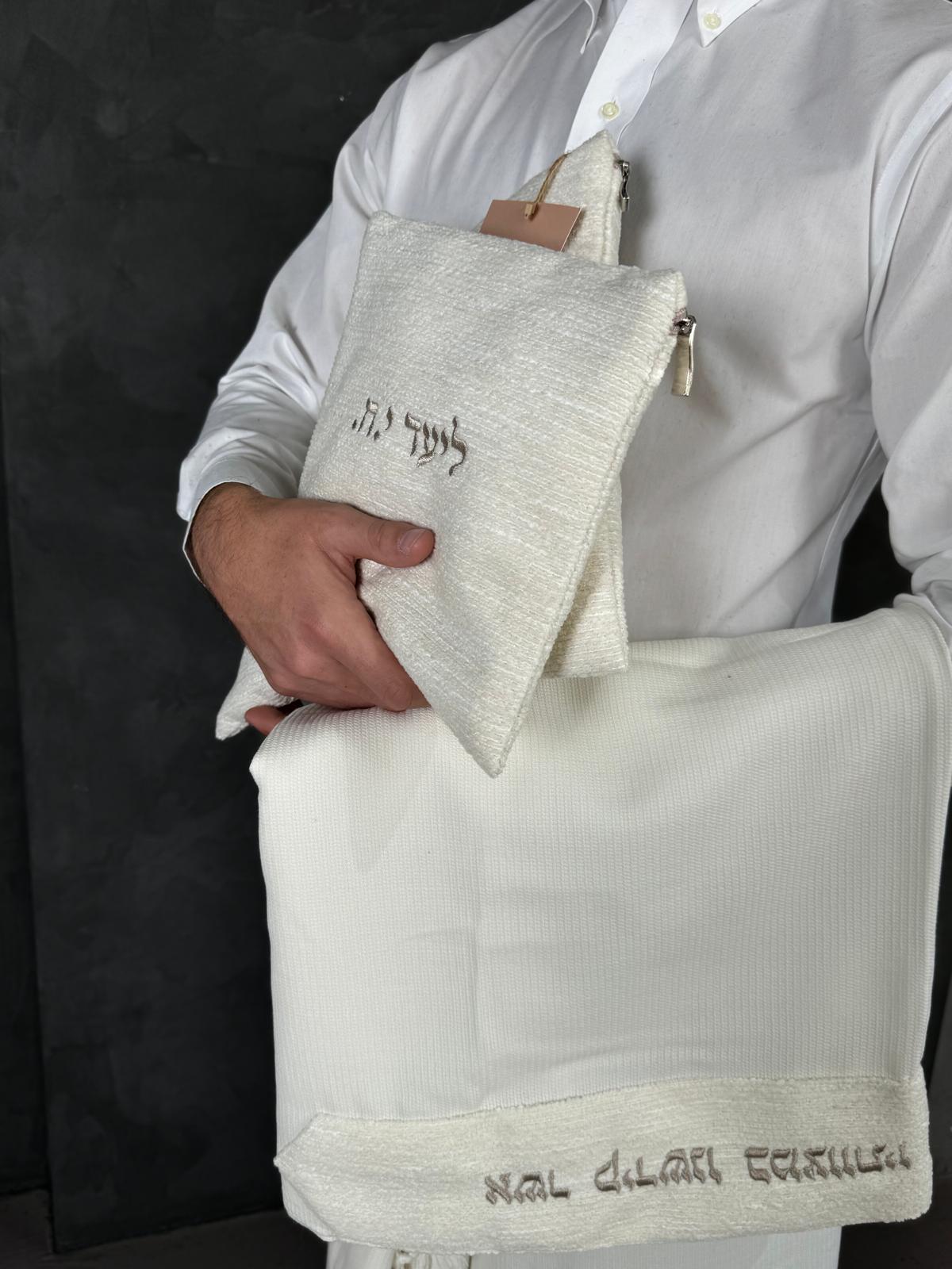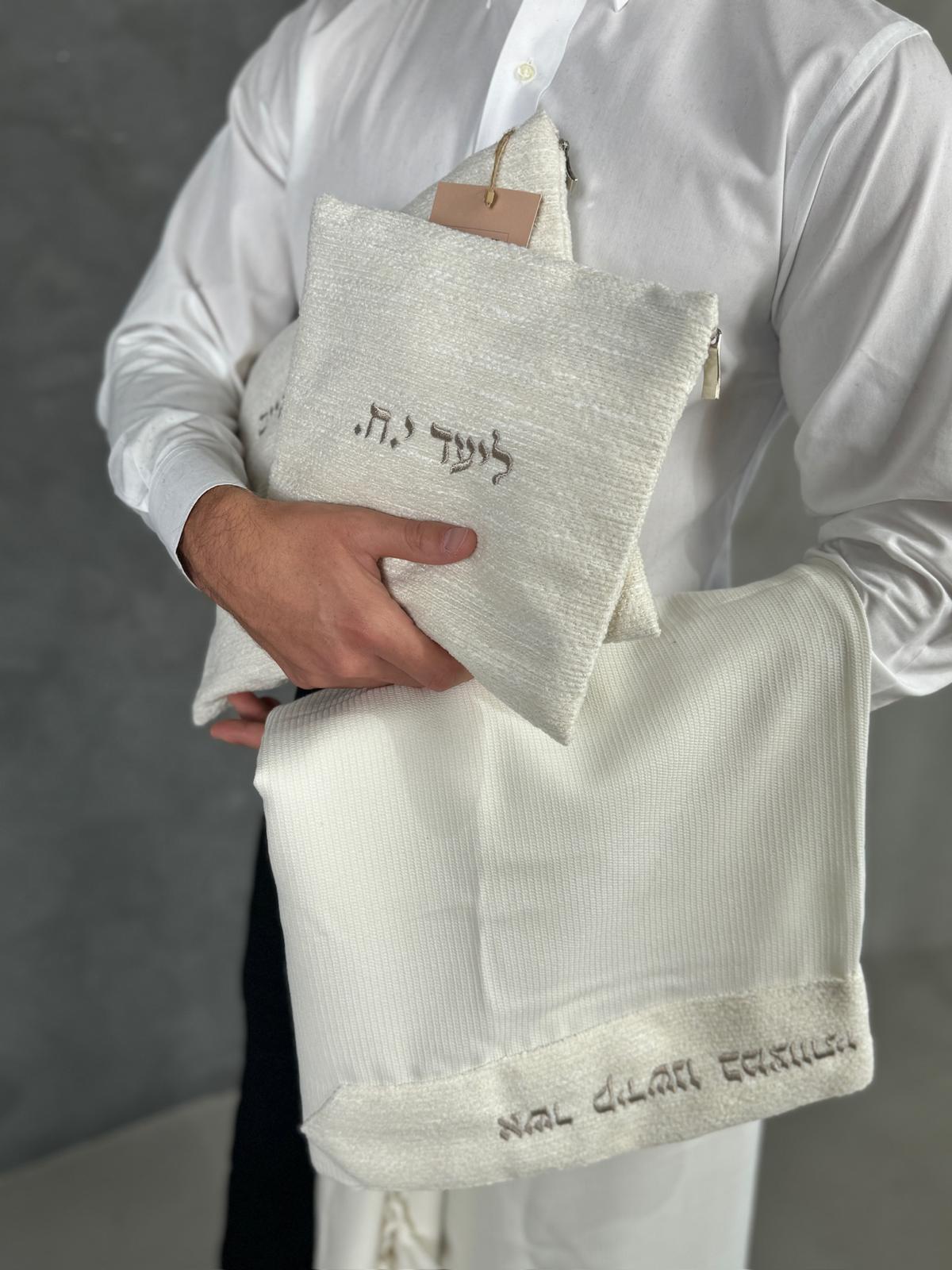 סט כיסויים קלאסי ויוקרתי מבד סריג בתוספת ריקמה בגוון ברונזה הנתנת לשינוי ע״י הלקוח.
