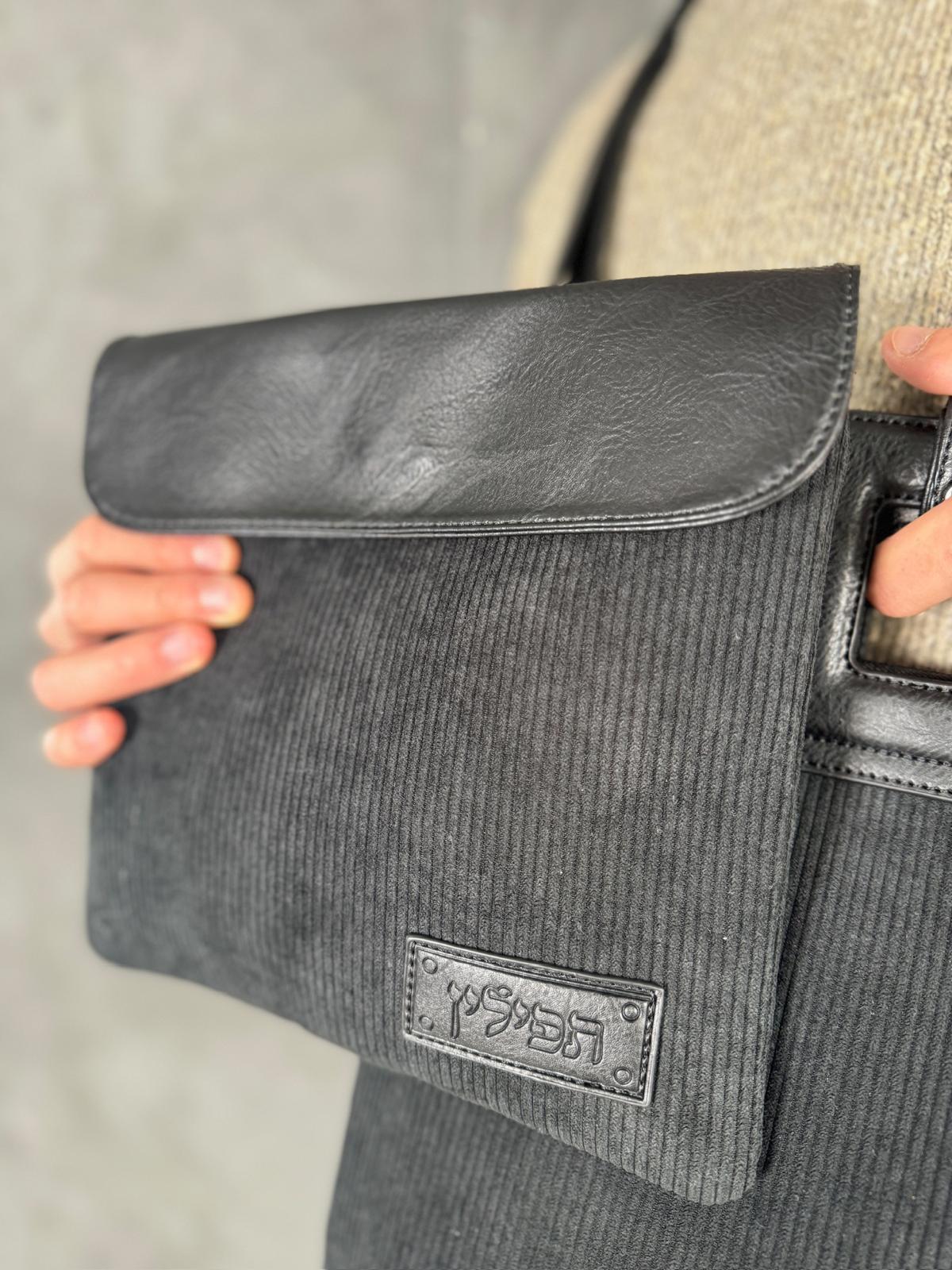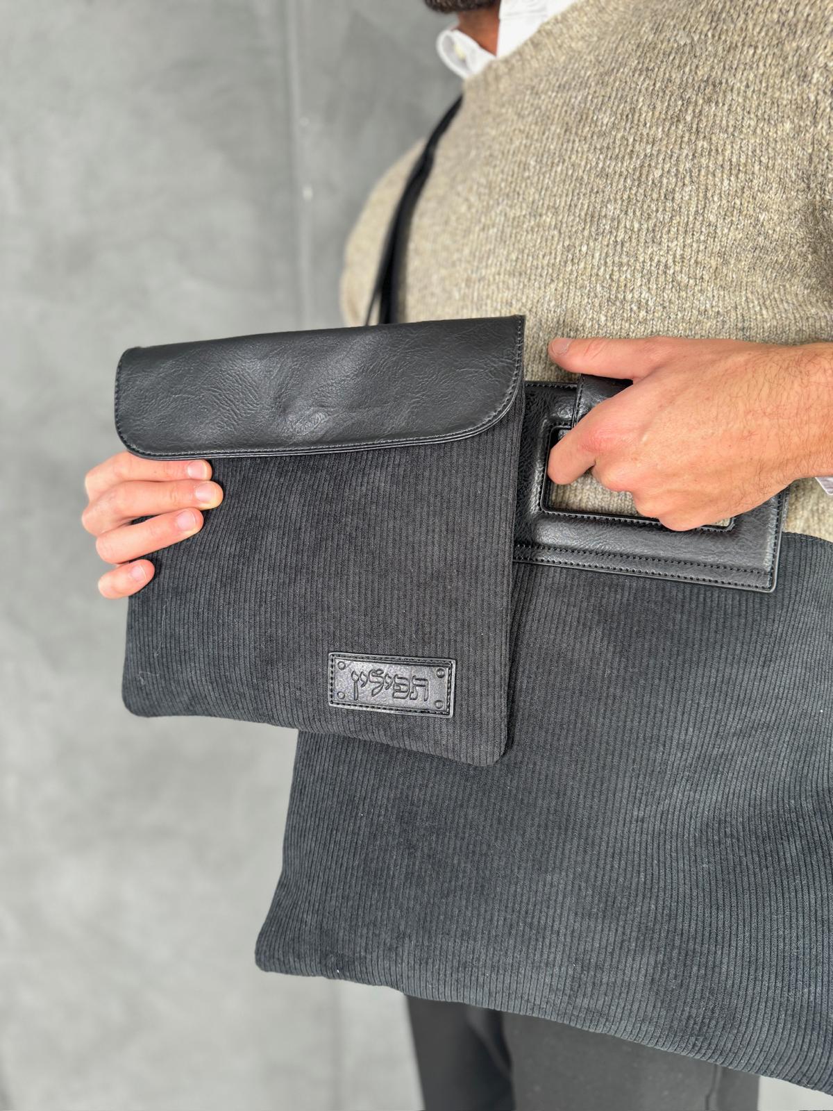 משולב טלאי דמוי עור שחור עם המילה טלית/תפילין